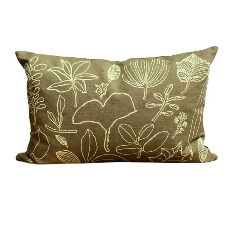 Botanic Leaves Cushion Cover 58x38cm in green yellow