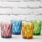 This colourful set of glass tumblers designed by Artland will add a fun pop of colour to your kitchen. The complex diamond design creates a tactile, comfortable hold. Made from pressed coloured glass in blue, green, gold and purple. They come in a box making them an ideal gift.
