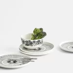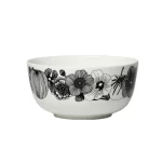 This large serving bowl is decorated with the black and white Siirtolapuutarha pattern. This bowl is the perfect size for noodles, salads, or soups. Made from white stoneware suitable for dishwashers, ovens, microwaves and freezers.