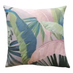 Surround yourself in a tropical oasis all year round with this painterly botanical design by Catherine Martin. Featuring banana leaves and fan palms, rhythmically swaying in the tropical breeze. This high performance outdoor cushion is made from a heavy duty upholstery fabric, suitable for indoor and outdoor use. Stain resistant with a Teflon finish for easy cleaning.